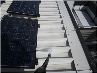 屋上屋根 折版屋根部材 高圧水洗浄状況
