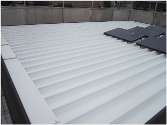 屋上屋根 折版屋根部材 上塗り塗装状況 1