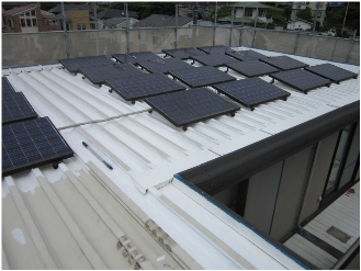 屋上屋根 折版屋根部材 上塗り塗装状況 1